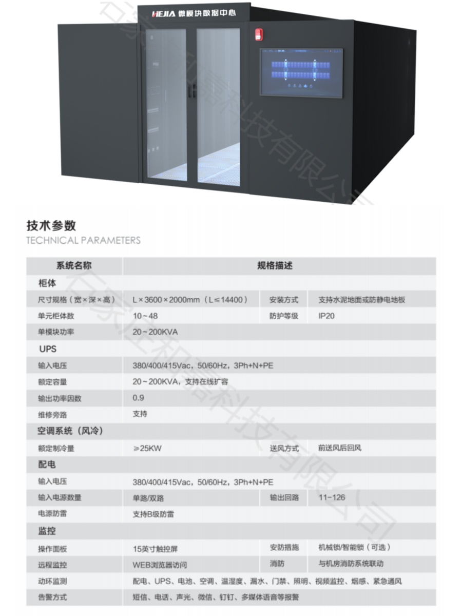 在數(shù)字化轉(zhuǎn)型加速的今天,企業(yè)對數(shù)據(jù)中心的需求日益增長,而傳統(tǒng)機房建設周期長、能耗高、擴展性差等問題逐漸凸顯。石家莊和嘉科技有限公司推出的微模塊機房解決方案,以其高效節(jié)能、智能運維、快速部署等優(yōu)勢,成為中小型數(shù)據(jù)中心的理想選擇。本文將詳細介紹微模塊機房的功能特點,并深入解析其三款核心產(chǎn)品。