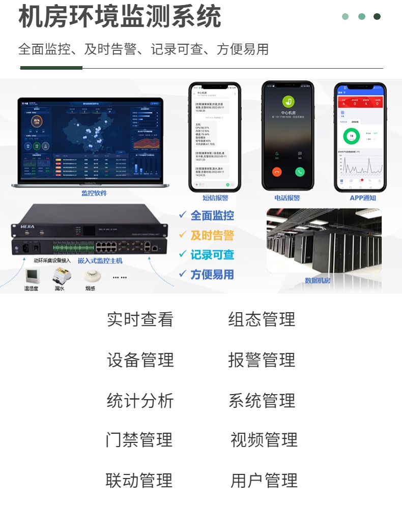 - 通過對機房環境進行監測,可以及時發現機房環境的異常情況,并采取相應措施,確保機房的可靠性和穩定性。