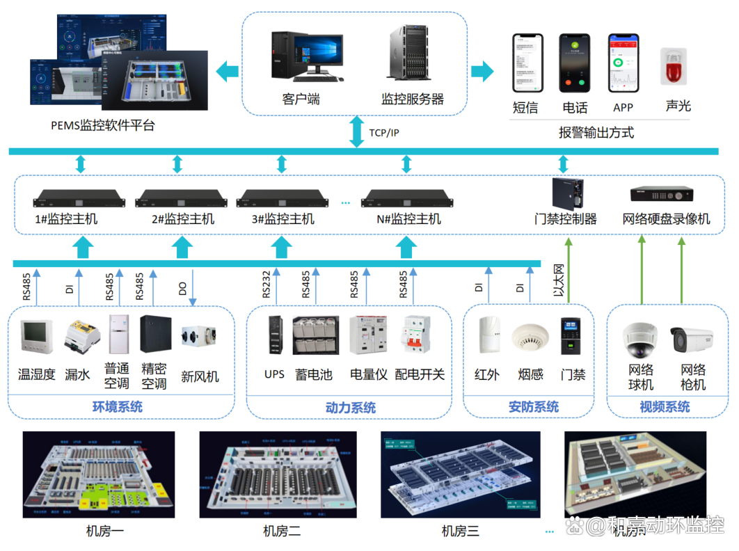 1.實(shí)時(shí)監(jiān)測(cè):動(dòng)力環(huán)境監(jiān)控系統(tǒng)能夠?qū)?shù)據(jù)中心的溫濕度、漏水、煙霧等環(huán)境參數(shù)進(jìn)行實(shí)時(shí)監(jiān)測(cè),及時(shí)發(fā)現(xiàn)異常情況并發(fā)出警報(bào),確保數(shù)據(jù)中心的運(yùn)行環(huán)境穩(wěn)定。