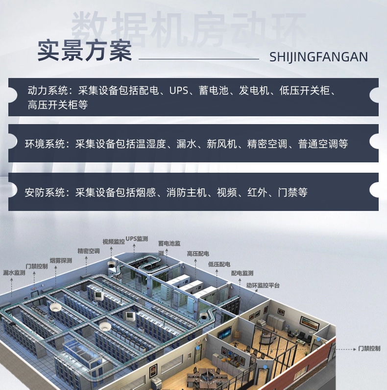 中小型機房動環監控系統是一種集成了環境監測、安全防范、智能控制等多種功能的綜合性管理系統。通過對機房內各種設備和環境進行實時監控,能夠保障機房的正常運行,提高管理效率。本文將詳細介紹中小型機房動環監控系統的配置清單,包括各組成部分的功能、特點及選型建議。