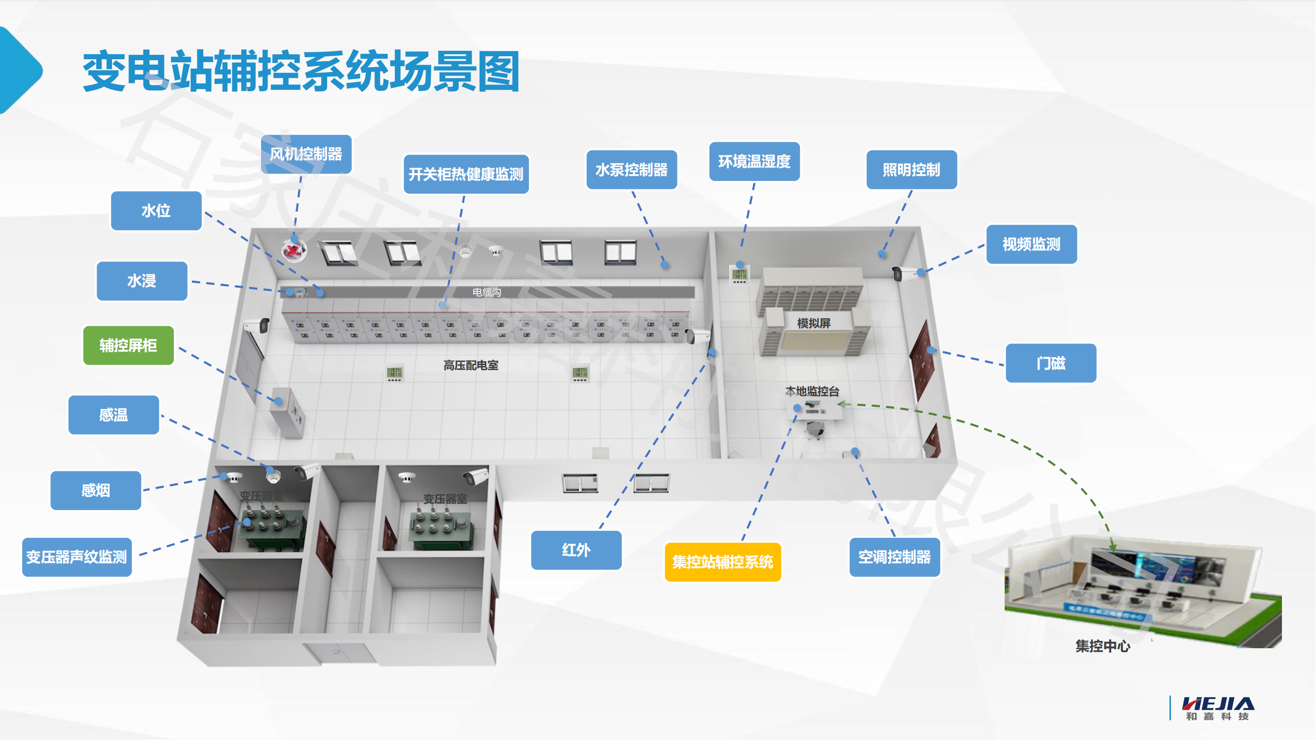 環境監測:溫濕度監控:實時檢測變電站內的溫度和濕度,確保設備在適宜的環境下運行。漏水檢測:通過部署水浸傳感器,及時發現電纜溝、地面等區域的漏水情況,防止水患對設備造成損害。空氣質量監測:部分系統還包含空氣質量監測功能,確保變電站內空氣質量符合標準。