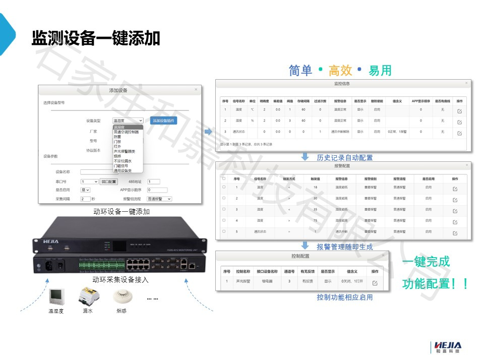 石家莊和嘉科技主營動力環(huán)境監(jiān)控系統(tǒng)、傳感器、智能監(jiān)控箱、變電站智能輔控屏柜、智能電控柜、ETC門架智能控制柜等產(chǎn)品